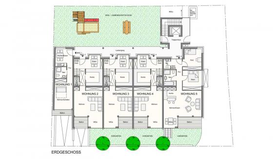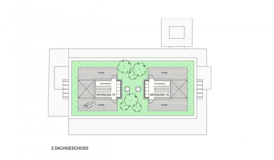 Der Baukörper ist viergeschossig, zuzüglich zweier Staffelgeschosse. Alle Wohnungen haben großzügige Balkone/Wintergarten bzw. Dachterrassen. Der Gemeinschaftsgartenanteil des Grundstücks lädt zum gemeinsamen Feiern und Verweilen der zukünftigen Mitbewohner ein.