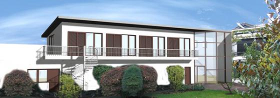 Ein bestehnder Lagerraum wurde zum Wohnhaus aufgestockt.